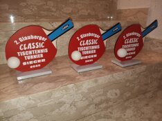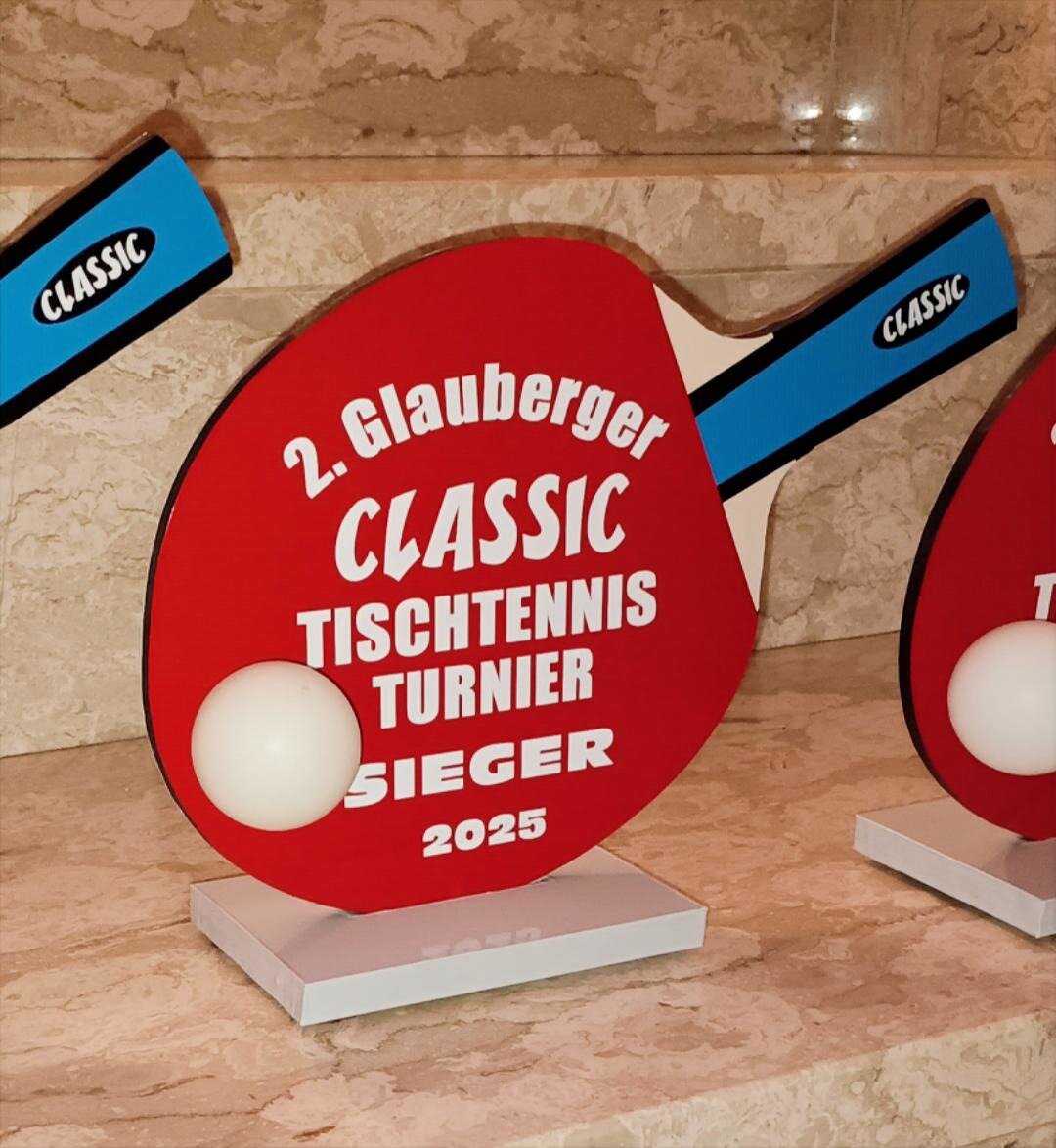 Als besondere Überraschung hatte der FSV Glauberg als Veranstalter Trophäen in Form von Tischtennisschlägern mit einem originalgroßen 38-Millimeter-Ball für die Sieger vorbereitet – eine liebevolle Hommage an die klassische Ära des Tischtennissports. "Es muss ja auch nicht immer ein Pokal sein" sagte ein Zuschauer.